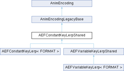 Inheritance diagram for AEFConstantKeyLerpShared:Base class for all Animation Encoding Formats using consistently-spaced key interpolation.