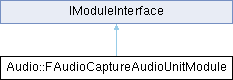 Inheritance diagram for Audio::FAudioCaptureAudioUnitModule:Public Member Functions | |