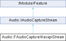 Inheritance diagram for Audio::FAudioCaptureWasapiStream:WASAPI implementation of IAudioCaptureStream which encapsulates capturing audio streams from device.
