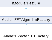 Inheritance diagram for Audio::FVectorFFTFactory:Public Member Functions | |