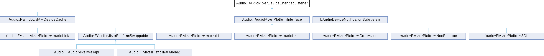 Inheritance diagram for Audio::IAudioMixerDeviceChangedListener:Classes | |