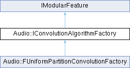 Inheritance diagram for Audio::IConvolutionAlgorithmFactory:Public Member Functions | |