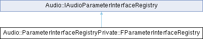Inheritance diagram for Audio::ParameterInterfaceRegistryPrivate::FParameterInterfaceRegistry:Public Member Functions | |