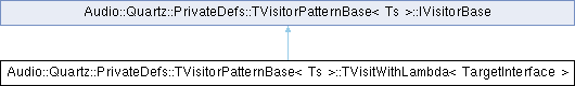 Inheritance diagram for Audio::Quartz::PrivateDefs::TVisitorPatternBase< Ts >::TVisitWithLambda< TargetInterface >:Public Member Functions | |