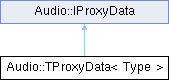 Inheritance diagram for Audio::TProxyData< Type >:Public Member Functions | |