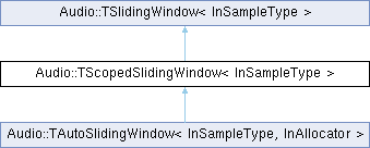 Inheritance diagram for Audio::TScopedSlidingWindow< InSampleType >:Public Member Functions | |