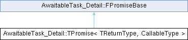 Inheritance diagram for AwaitableTask_Detail::TPromise< TReturnType, CallableType >:Public Types | |