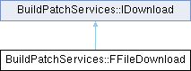 Inheritance diagram for BuildPatchServices::FFileDownload:Public Member Functions | |