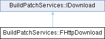 Inheritance diagram for BuildPatchServices::FHttpDownload:Public Member Functions | |
