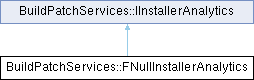 Inheritance diagram for BuildPatchServices::FNullInstallerAnalytics:Public Member Functions | |