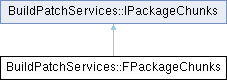 Inheritance diagram for BuildPatchServices::FPackageChunks:Public Member Functions | |