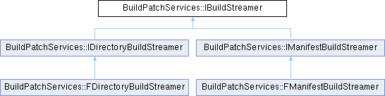 Inheritance diagram for BuildPatchServices::IBuildStreamer:Public Member Functions | |