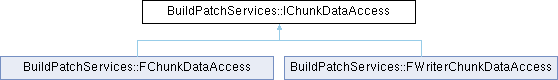 Inheritance diagram for BuildPatchServices::IChunkDataAccess:Public Member Functions | |