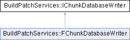 Inheritance diagram for BuildPatchServices::IChunkDatabaseWriter:Public Member Functions | |