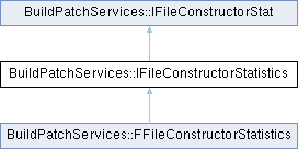 Inheritance diagram for BuildPatchServices::IFileConstructorStatistics:Interface to the statistics class which provides access to tracked values from a file constructor stat.