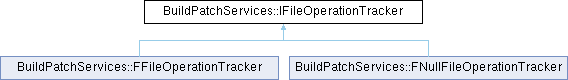 Inheritance diagram for BuildPatchServices::IFileOperationTracker:Public Member Functions | |