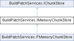 Inheritance diagram for BuildPatchServices::IMemoryChunkStore:Public Member Functions | |