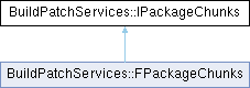 Inheritance diagram for BuildPatchServices::IPackageChunks:Public Member Functions | |
