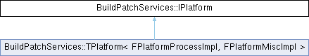 Inheritance diagram for BuildPatchServices::IPlatform:Public Member Functions | |