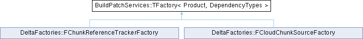 Inheritance diagram for BuildPatchServices::TFactory< Product, DependencyTypes >:Public Member Functions | |