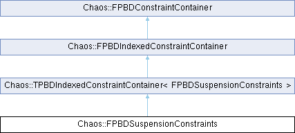| | FPBDSuspensionConstraints (TArray< FVec3 > &&Locations, TArray< TGeometryParticleHandle< FReal, 3 > * > &&InConstrainedParticles, TArray< FVec3 > &&InLocalOffset, TArray< FPBDSuspensionSettings > &&InConstraintSettings) |