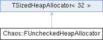 Inheritance diagram for Chaos::FUncheckedHeapAllocator:Public Types | |