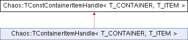 Inheritance diagram for Chaos::TConstContainerItemHandle< T_CONTAINER, T_ITEM >:Public Types | |