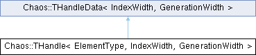 Inheritance diagram for Chaos::THandle< ElementType, IndexWidth, GenerationWidth >:Public Member Functions | |