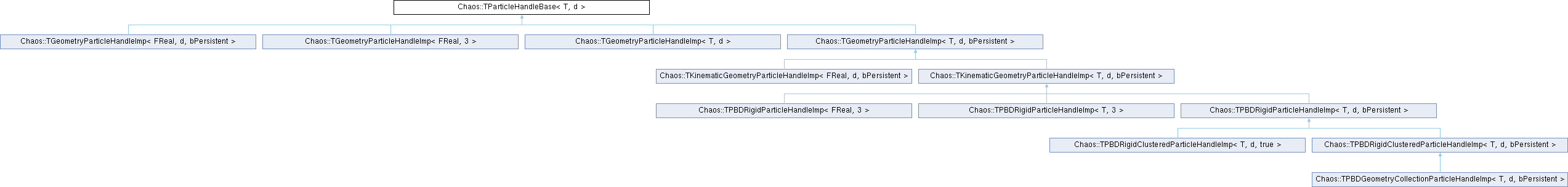 Inheritance diagram for Chaos::TParticleHandleBase< T, d >:Public Types | |