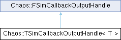 Inheritance diagram for Chaos::TSimCallbackOutputHandle< T >:Handle for output that is automatically cleaned up. NOTE: this should only be used on external thread as the destructor automatically frees into external structures