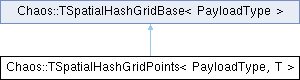 Inheritance diagram for Chaos::TSpatialHashGridPoints< PayloadType, T >:Public Member Functions | |