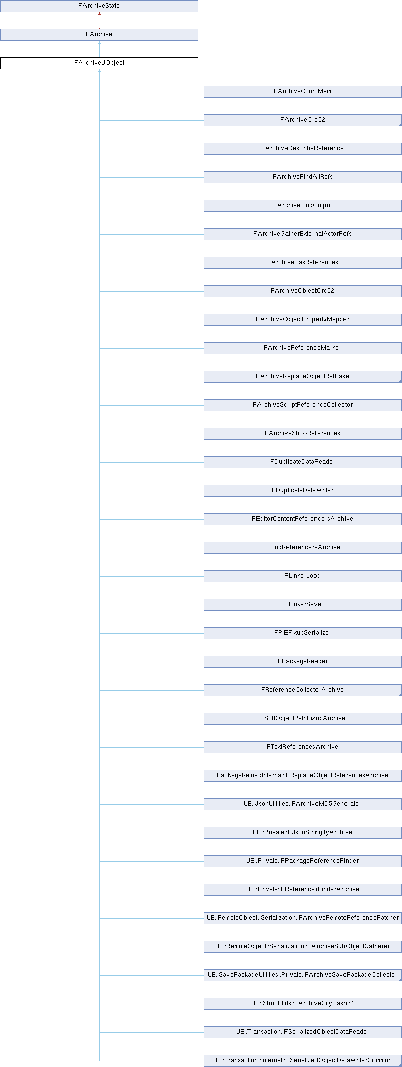 Inheritance diagram for FArchiveUObject:Static Public Member Functions | |