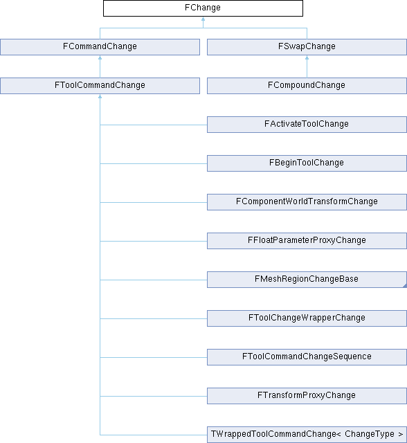 FChange modifies a UObject and is meant to be used to implement undo/redo. The change is embedded in an FTransaction which executes it instead of the standard serialization transaction (cannot be combined - see FTransaction).