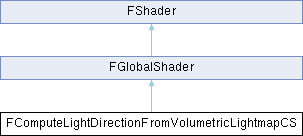 Inheritance diagram for FComputeLightDirectionFromVolumetricLightmapCS:Additional Inherited Members | |