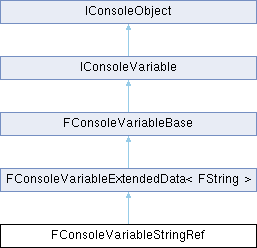 Inheritance diagram for FConsoleVariableStringRef:Additional Inherited Members | |