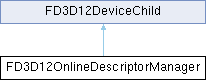 Inheritance diagram for FD3D12OnlineDescriptorManager:Public Member Functions | |