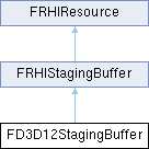 Inheritance diagram for FD3D12StagingBuffer:Public Member Functions | |