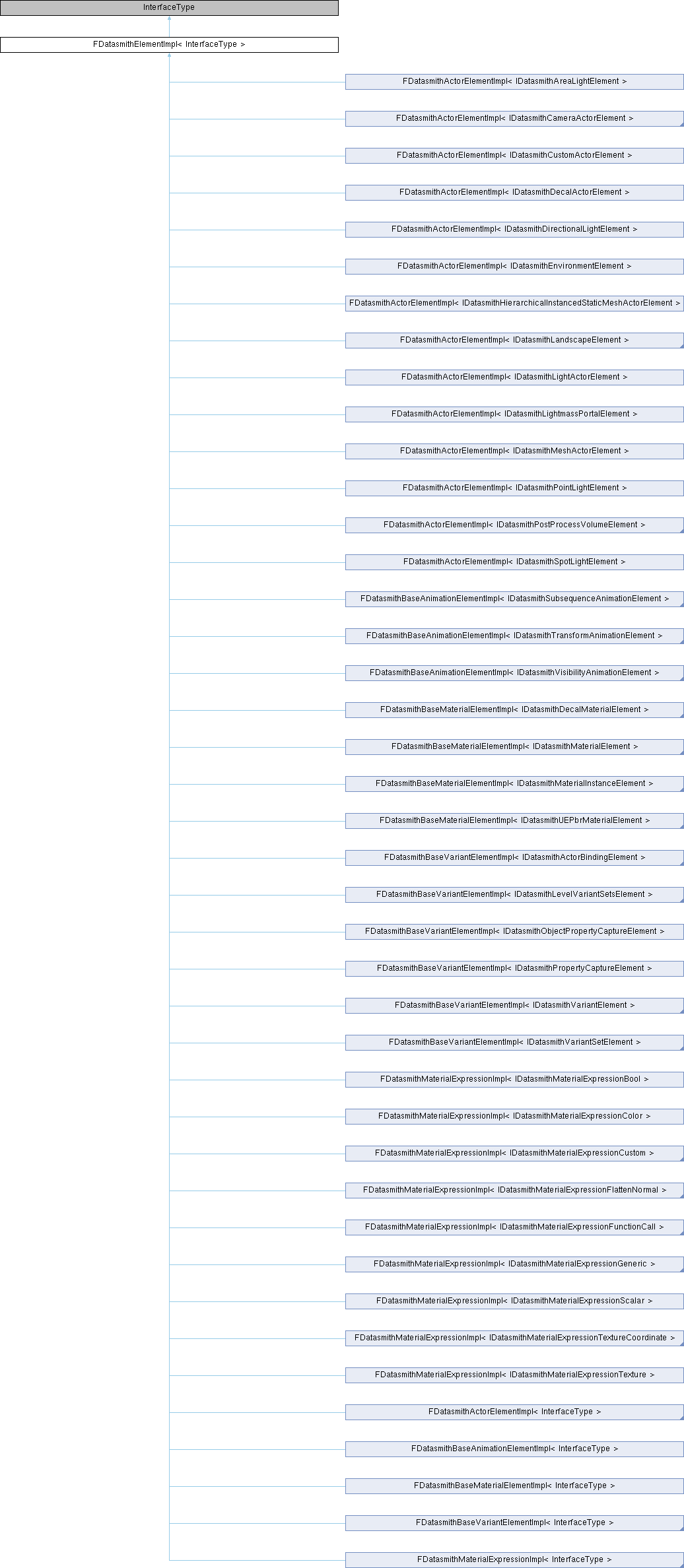 Inheritance diagram for FDatasmithElementImpl< InterfaceType >:Public Member Functions | |