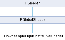 Inheritance diagram for FDownsampleLightShaftsPixelShader:Public Types | |