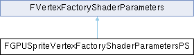 Inheritance diagram for FGPUSpriteVertexFactoryShaderParametersPS:Public Member Functions | |
