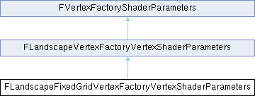 Inheritance diagram for FLandscapeFixedGridVertexFactoryVertexShaderParameters:Shader parameters for use with FLandscapeFixedGridVertexFactory Simple grid rendering (without dynamic lod blend) needs a simpler fixed setup.
