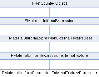 Inheritance diagram for FMaterialUniformExpressionExternalTextureParameter:Additional Inherited Members | |