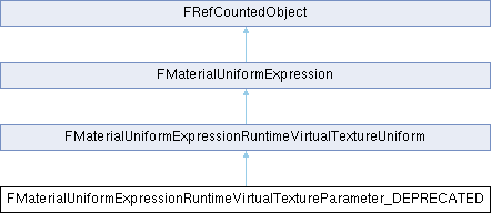 Inheritance diagram for FMaterialUniformExpressionRuntimeVirtualTextureParameter_DEPRECATED:Deprecated FMaterialUniformExpressionRuntimeVirtualTextureParameter in favor of FMaterialUniformExpressionRuntimeVirtualTextureUniform Keep around until we no longer need to support serialization of 4.23 data