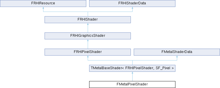 Inheritance diagram for FMetalPixelShader:| FMetalPixelShader::FMetalPixelShader | ( | FMetalDevice & | Device, |
