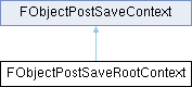 Inheritance diagram for FObjectPostSaveRootContext:Public Member Functions | |