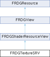 Inheritance diagram for FRDGTextureSRV:Public Member Functions | |
