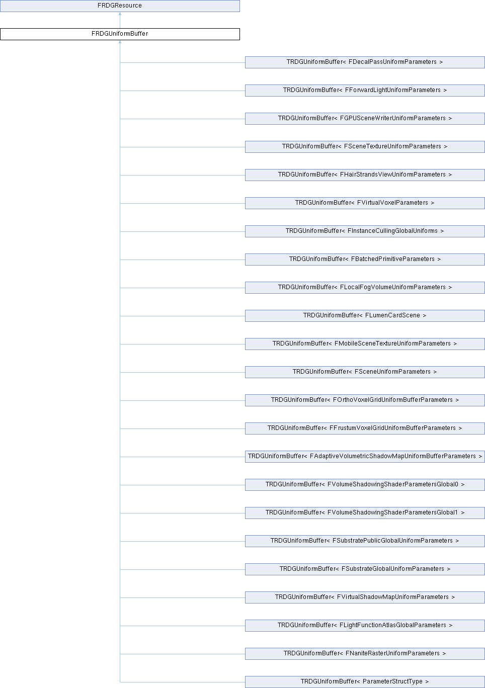 Inheritance diagram for FRDGUniformBuffer:Public Member Functions | |
