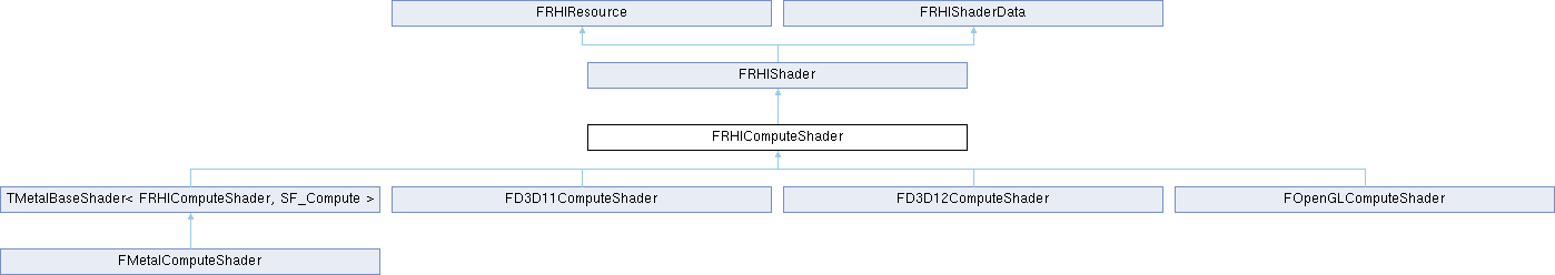 Inheritance diagram for FRHIComputeShader:Additional Inherited Members | ||