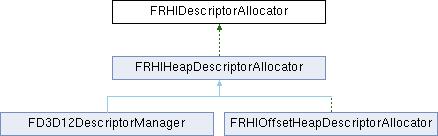Inheritance diagram for FRHIDescriptorAllocator:Public Member Functions | |