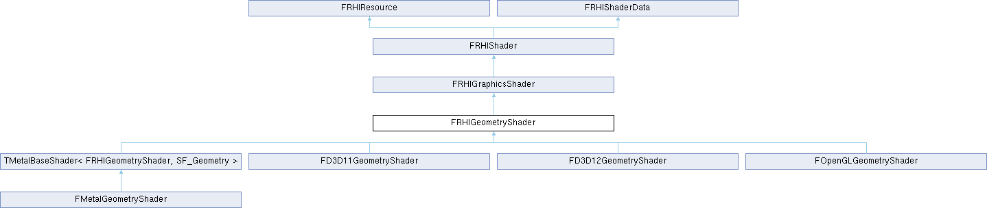 Inheritance diagram for FRHIGeometryShader:Additional Inherited Members | ||